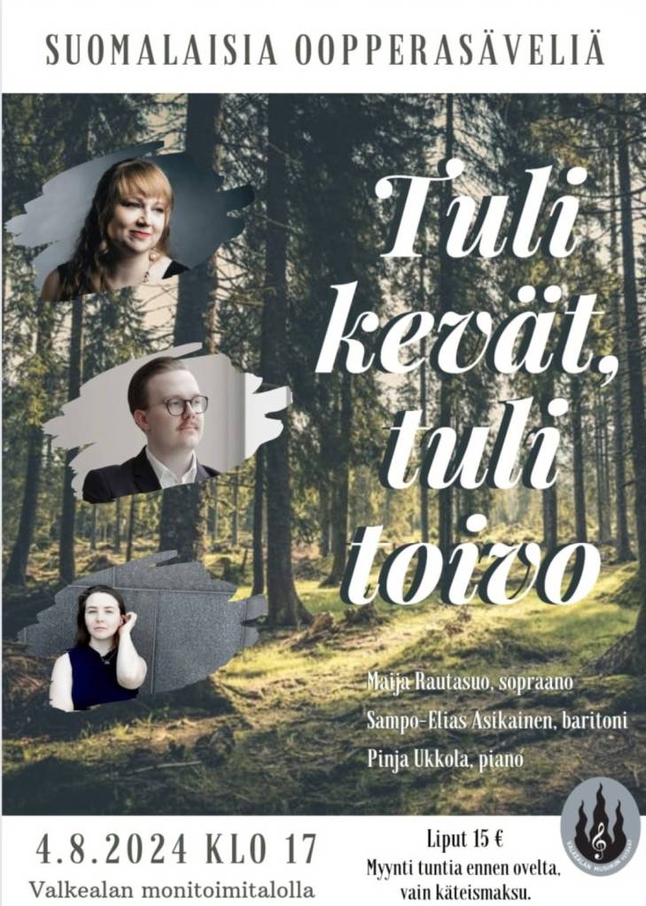 Suomalainen ooppera on ylpeyden aihe, jota kuulemme ani harvoin muualla kuin koko teoksia esitettäessä. Suomalaisten säveltäjien kynästä on syntynyt valtavan paljon kauniita aarioita ja valloittavia duettoja, joita haluamme tuoda yleisön koettavaksi. Useimmat suomalaiset oopperateokset ovat muodoltaan ensemble-oopperoita tai kohtaukset on sävelletty niin yhteensulautuviksi, että varsinaisten konserttiaarioiden löytäminen on haastavaa tai suorastaan mahdotonta. Tässä konsertissa kuullaan aarioita, duettoja sekä alkusoittoja meille tärkeistä, tutuista sekä uudemmista teoksista.